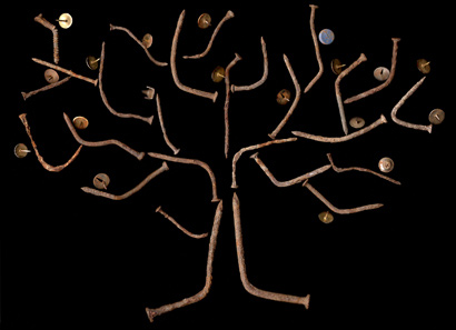 Soon I began scanning objects. Scanning nails, nuts, bolts, and other found objects , I use these rusty remains primarily as lines in a drawing. Scanning allows the viewer to focus on the objects' intricate rusty textures, while simultaneously distancing and muting parts of them.