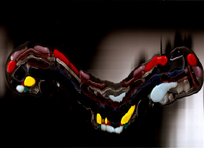 I am a third year art student from Holland. I started my scanning fascination about 7 years ago by accident. I left the lid open, and it scanned the sealing. Then it scanned the movement of my hand, closing the lid, and it gave quite a nice effect. I put a glass on it and moved it around, and the result was a space like long light shape, with all kind of colors and reflections.. My passion was born. It is very interesting to me how objects ‘melt’ in time. The shapes stretch out, become almost liquid when you move them while scanning. I think the scanner is a great medium for art, to experiment with. It’s an underrated instrument for photography. The beauty, for me, is in the creative possibilities of everyday household devices. All Images Copyright © 2009, Stephanie Sierou-Aarten. All rights reserved worldwide.
